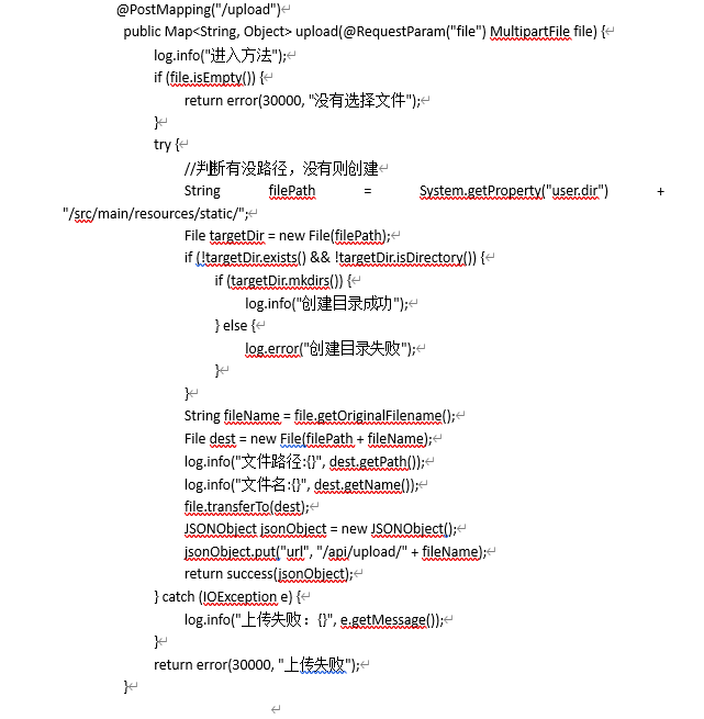 注册页UserController.java,传入user对象,并将"user_id"、 "state"、 "user_group"、"login_time"、"phone"、"phone_state"、 "username"、"nickname"、"password"、"email"、"email_state"、"avatar"、"create_time"输入,重点是 "username"、"nickname"、"password"必须输入,通过获取username,数据库查询是否有该用户,如果存在,则提示“用户已存在”,否则执行将UserId置为空(数据库表中该字段已设置自动递增),代码如图所示。