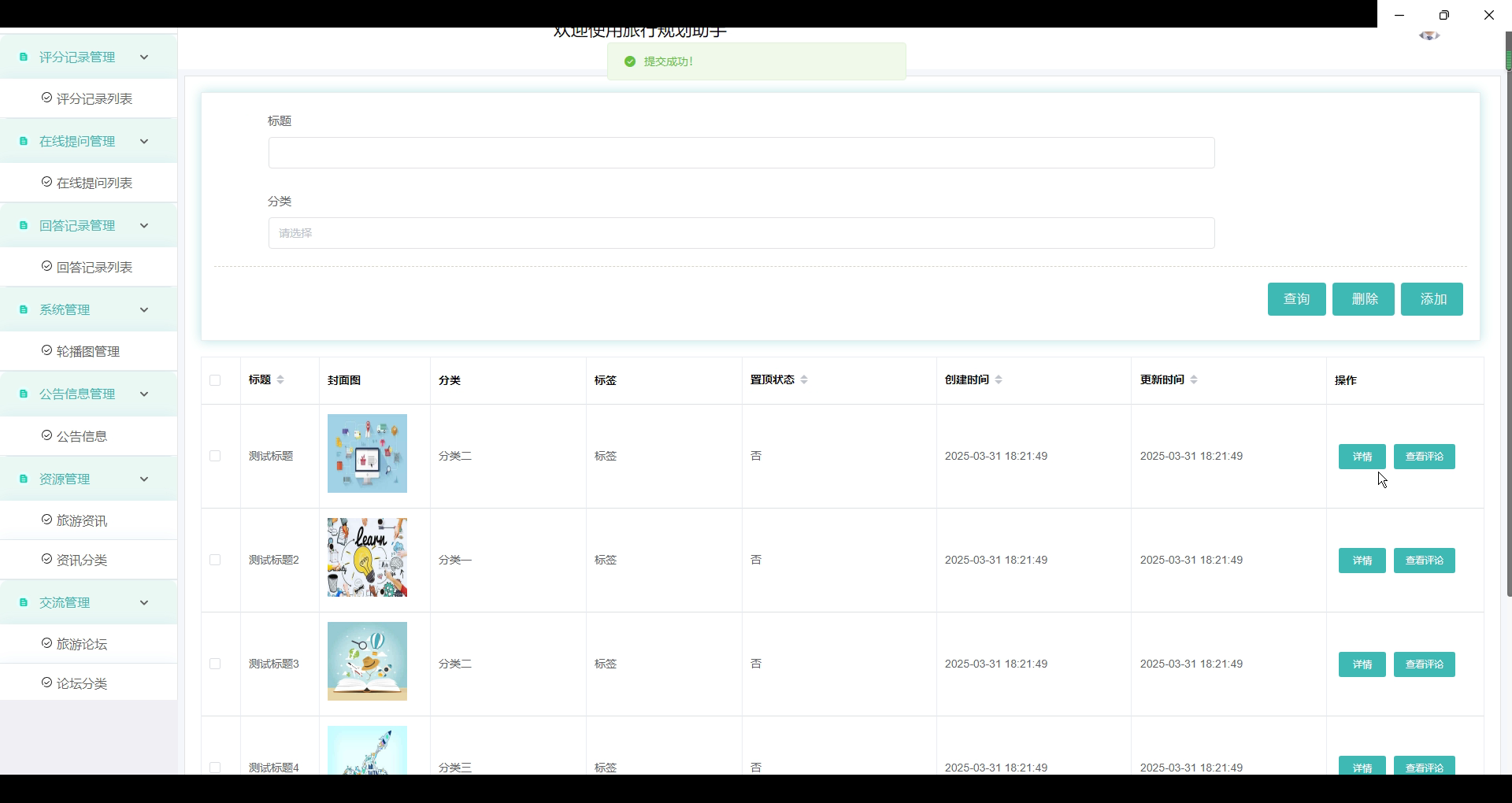 管理员监督并促进用户之间的互动交流,管理旅游论坛的内容,确保讨论积极健康。通过有效的交流管理,营造一个互助共享的社区氛围,增强用户粘性。界面如下图所示。