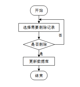 用户选择需要删除的记录后,系统判断是否确认删除。若未确认,返回选择环节;若确认删除,则更新数据库,删除对应记录,完成操作后流程结束。删除信息流程图如图3-6所示。