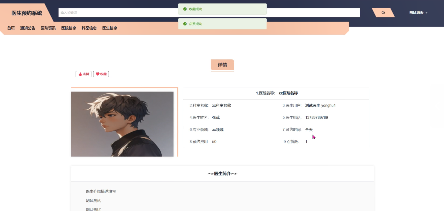 | 预期结果 | 提示预约成功,该医生预约成功 |