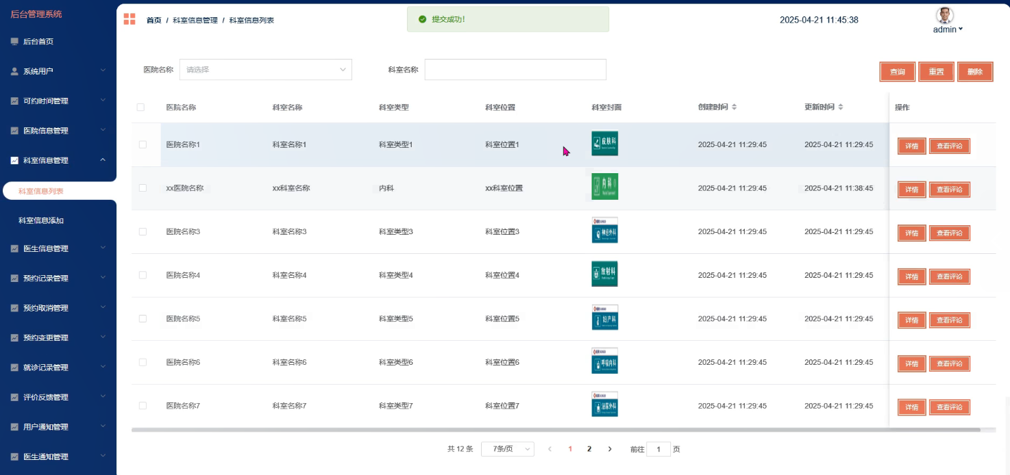 (5)科室信息管理:添加、编辑科室信息及服务内容,方便患者根据需求选择合适的科室就诊。