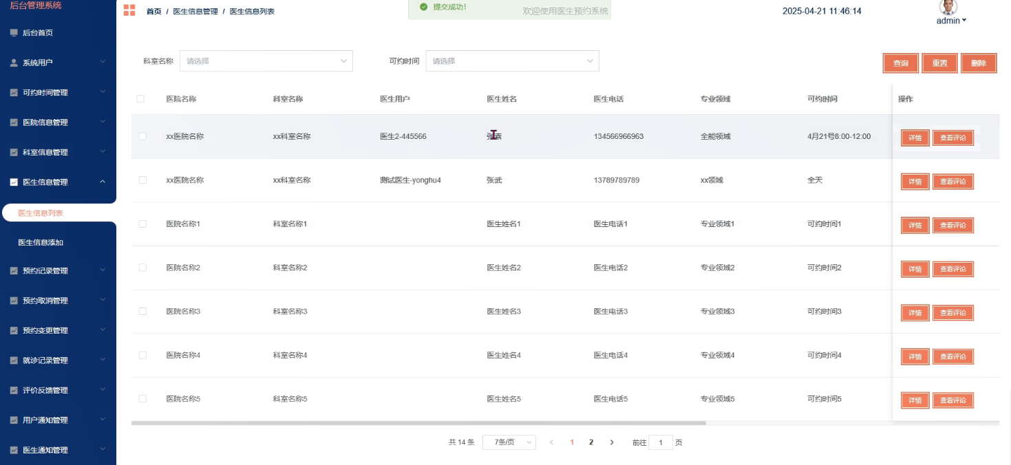 | 前提 | 管理员登录—》医生信息管理—》医生信息列表 |