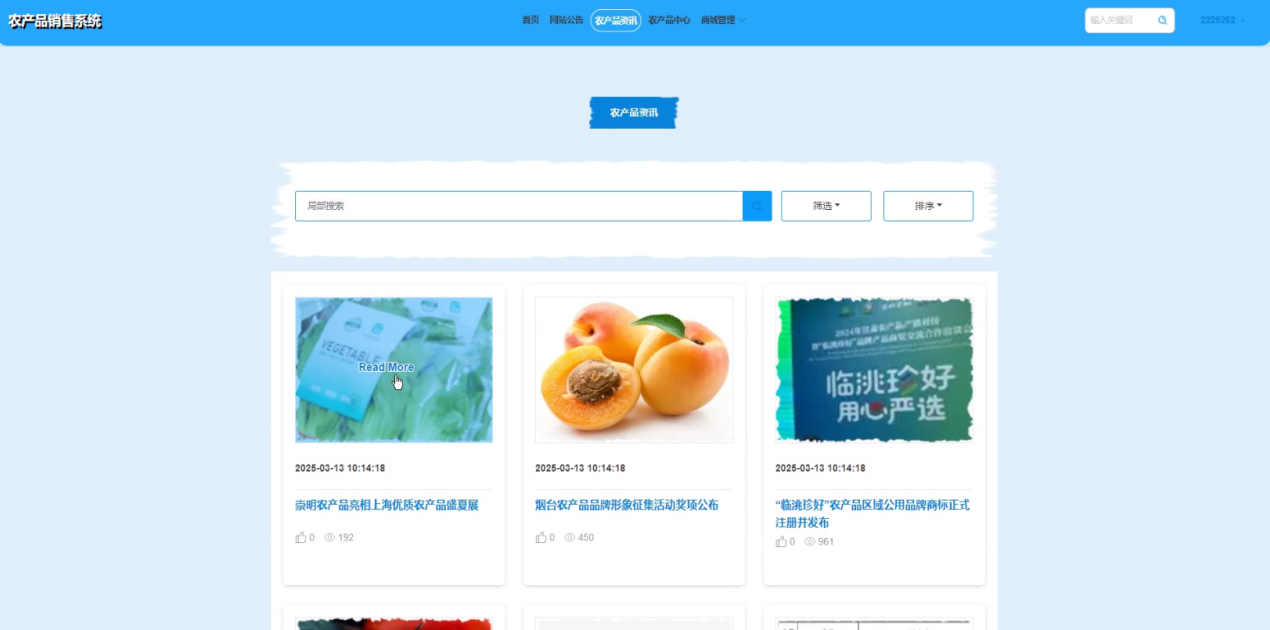 农产品资讯:农产品资讯板块专注于发布与农产品相关的新闻和文章,用户可以对感兴趣的内容点赞、收藏或发表自己的见解。此外,还设有热门列表和文章推荐,方便用户发现更多有价值的信息。