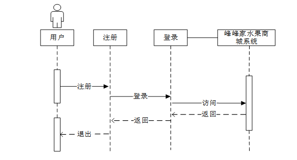 用户通过注册模块发送注册请求,系统完成注册后返回确认信息。随后,用户通过登录模块发送登录请求,系统验证用户信息后允许访问目标系统。用户完成操作后可选择退出,系统终止会话。注册时序图,如图4-3所示。