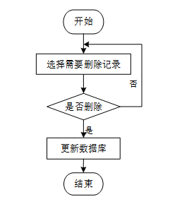 用户选择需要删除的记录后,系统判断是否确认删除。若未确认,返回选择环节;若确认删除,则更新数据库,删除对应记录,完成操作后流程结束。删除信息流程图如图3-8所示。