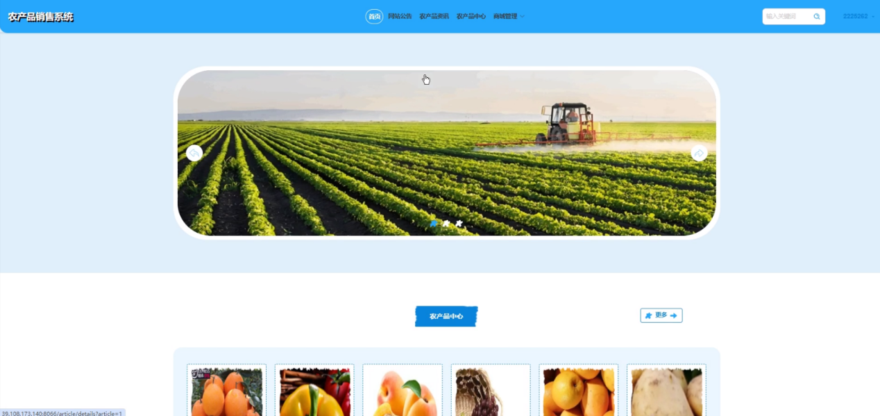 随着经济的发展和生活水平的提升,消费者对农产品的需求日益多样化和高品质化。传统销售模式在满足这些需求方面面临挑战,包括地域限制、信息不对充分以及时间成本高等问题。基于此背景,设计了一个基于SSM框架(Spring + SpringMVC + MyBatis)的农产品销售系统,通过互联网技术的应用,为农产品提供了一个全新的销售渠道,不仅拉近了生产者与消费者之间的距离,还提升了交易效率和服务质量。系统主要分为注册用户和管理员两个角色,各自具备不同的权限和功能。用户能够轻松注册登录,浏览丰富多样的农产品,并进行购买操作。同时,系统支持订单追踪功能,确保消费者可以随时了解自己订单的状态。对于管理者而言,后台提供了全面的商品、订单及资讯管理工具,保障系统运营顺畅高效。此外,系统注重用户体验,构建了一个透明公正的交易环境,让用户在享受便捷服务的同时感受到信任与安全。这种创新模式促进了农产品的快速流通,有助于增加农民收入,推动农业现代化进程向前发展。系统的应用有效解决了传统农产品销售中的诸多痛点,展现了信息技术与农业生产结合的巨大潜力。
