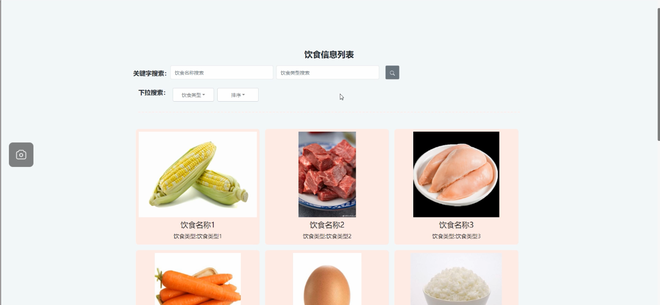 | 4 | 验证饮食信息搜索功能是否正常 | 在搜索框中输入关键字,点击搜索按钮 | 成功加载并显示符合关键字的饮食信息列表 |