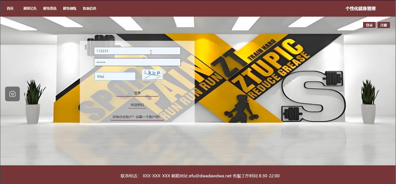 - 公告通知:普通用户可以查看个性化健身管理发布的重要公告信息,供普通用户浏览和熟悉网站相关事项。