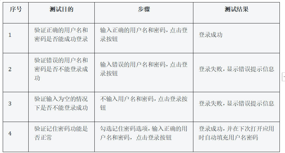 | 序号 | 测试目的 | 步骤 | 测试结果 |