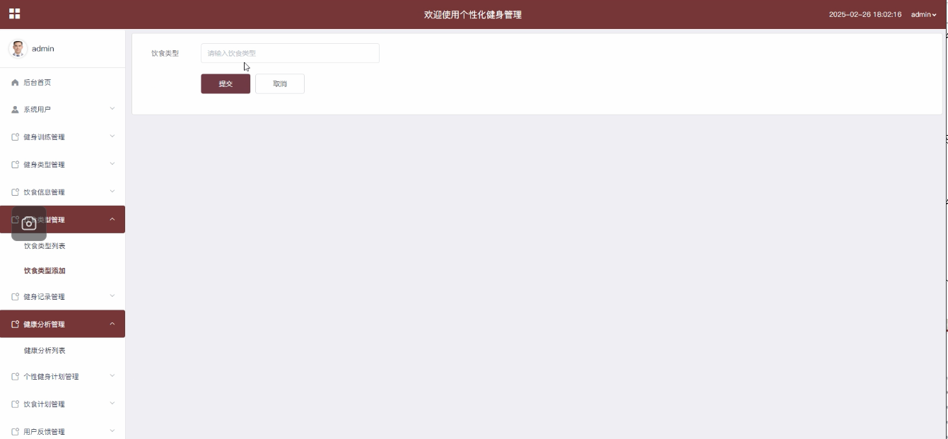 - 饮食类型管理:管理员拥有查看和删除饮食类型列表的权限,同时,也能够添加新的饮食类型。