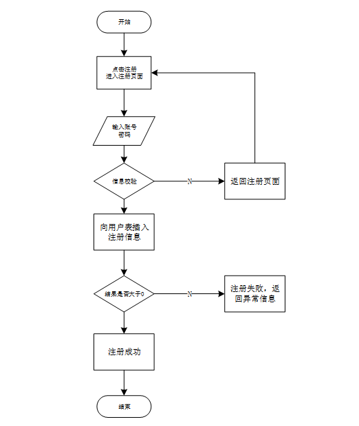 注册的过程,第一部分是账号的注册,第二部分是信息完善。在业务开展过程中,管理员可对用户信息进行修改等管理操作,注册流程如图3-4用户注册流程图所示。