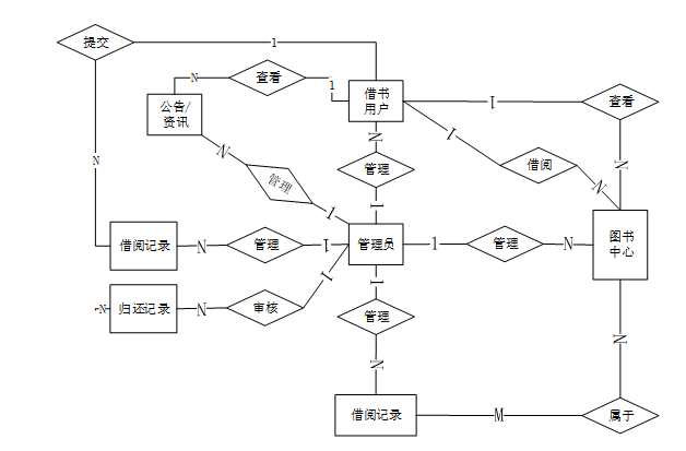 借助先进的系统,E-R图使其他用户可以快速轻松地了解系统的功能以及他们之间的关系。根据在线图书管理系统分析结果,本在线图书管理系统总体E-R图如下图所示。