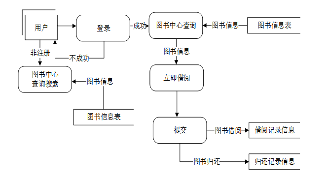 开发在线图书管理系统最主要的一个目的就是实现用户对图书中心的借阅,图3-3就是系统的数据流图。