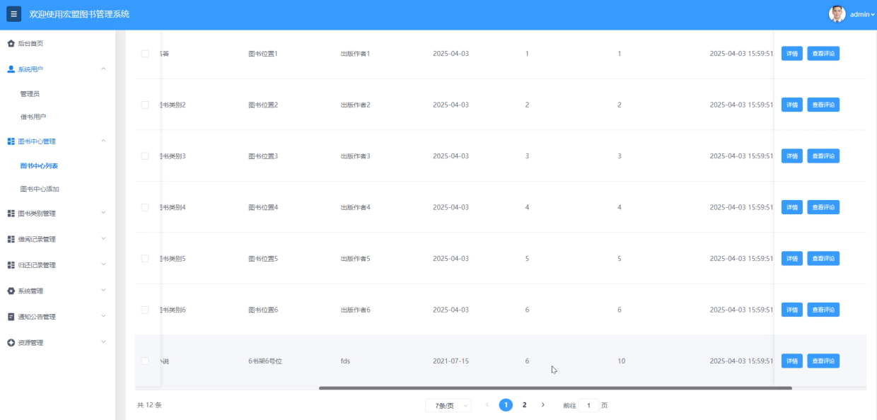 图书中心:允许用户根据关键词搜索图书,并查看详细信息如库存状态、简介等。