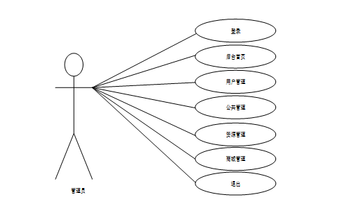 HTML5+Node.js的化妆品网站设计与实现统的设计与实现中管理员包含登录、后台首页、公共管理、用户管理、资源管理、商城管理等功能模块,对应角色用例图如图3.2所示: