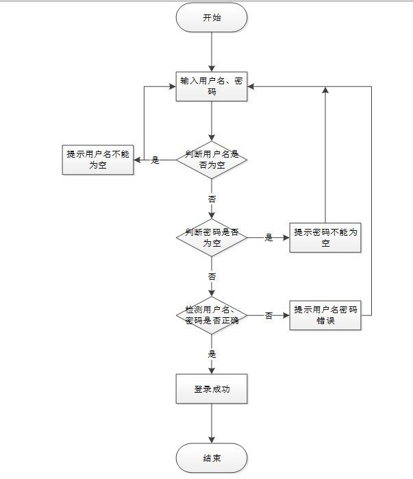 所有用户登录系统需要前端校验用户名、密码是否正确以及是否为空,具体流程图如图所示: