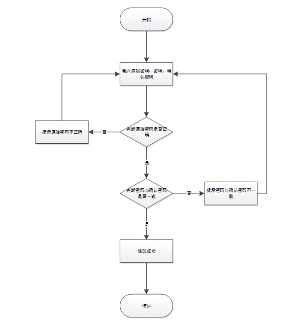 所有用户可以我的账户信息页面,点击修改修改密码进行修改登录密码操作,修改密码流程如图所示: