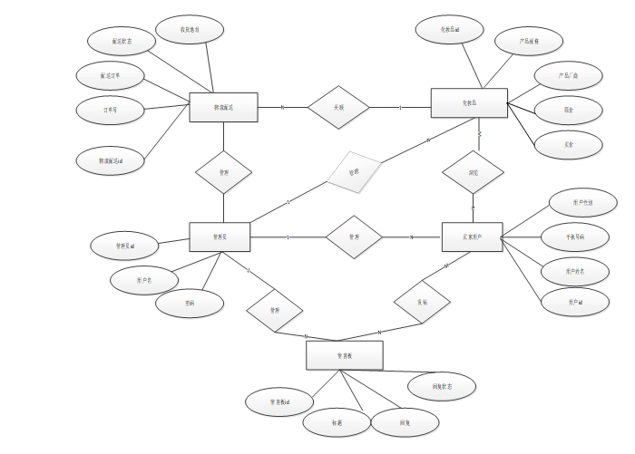 图4.2HTML5+Node.js的化妆品网站设计与实现统的设计与实现的E-R关系图