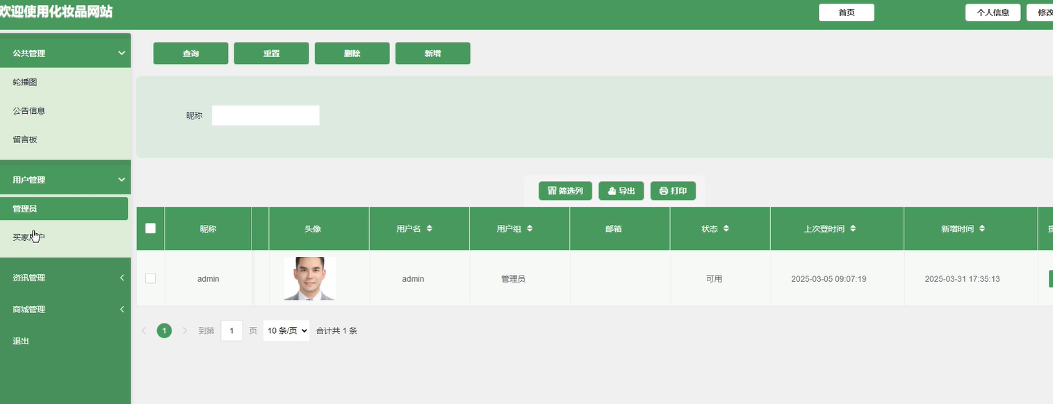 HTML5+Node.js的化妆品网站设计与实现网站包含供买家用户、管理员两个角色划分,每个角色对应的主要功能如下: