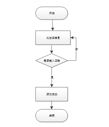 添加化妆品,输入产品名称、产品规格、原价、卖家等信息,并校验输入是否正确,化妆品添加流程图,如图所示: