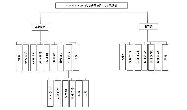 图4.1HTML5+Node.js的化妆品网站设计与实现系统的功能模块图
