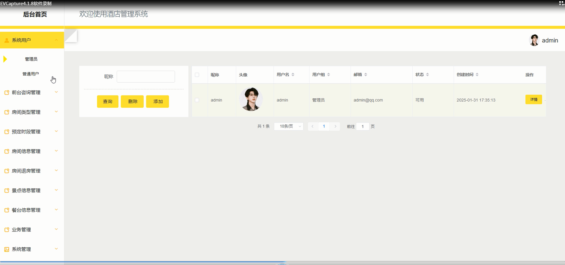 b) 系统用户管理:管理员可对系统用户进行增删改查操作,分配角色权限,保障用户数据的准确性和系统安全性。