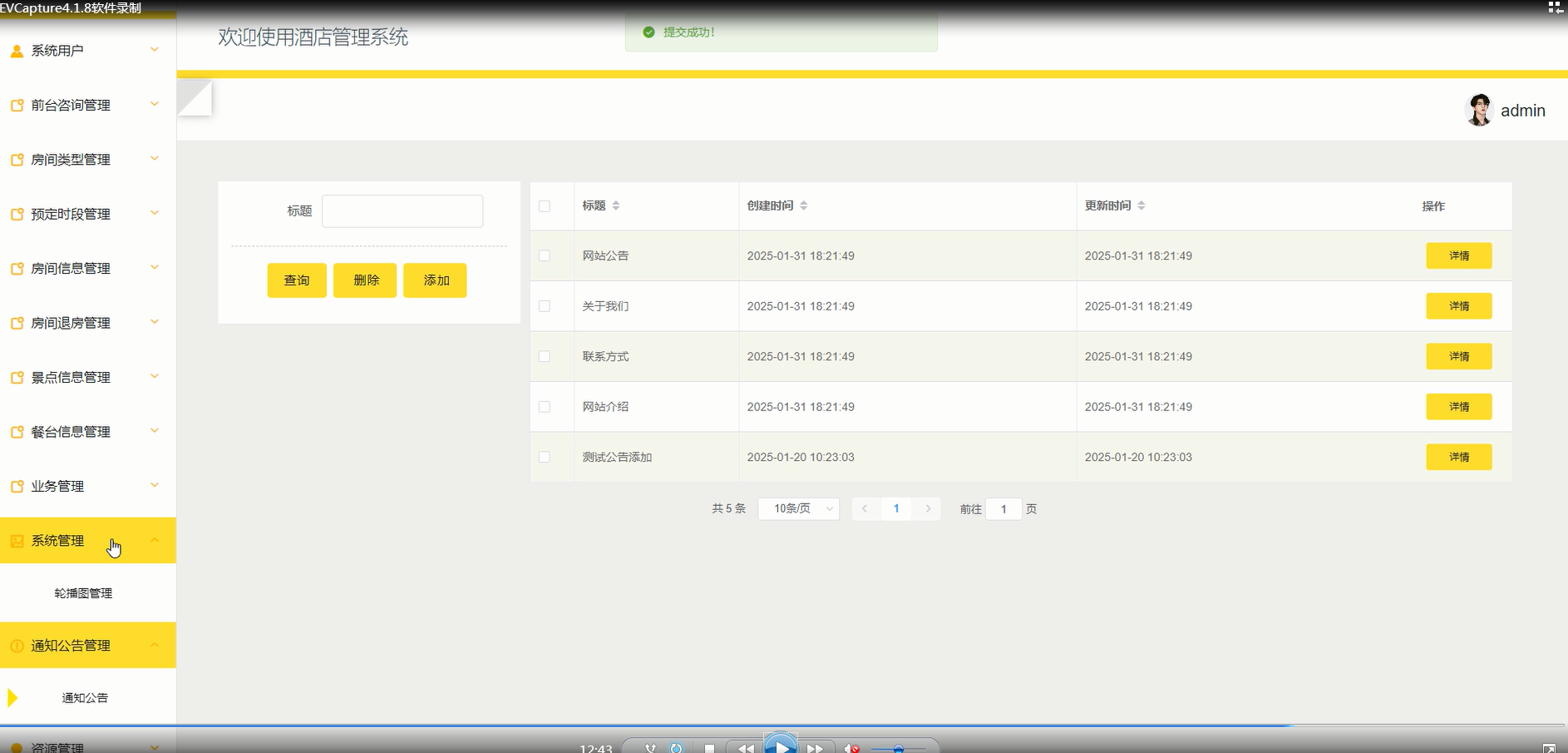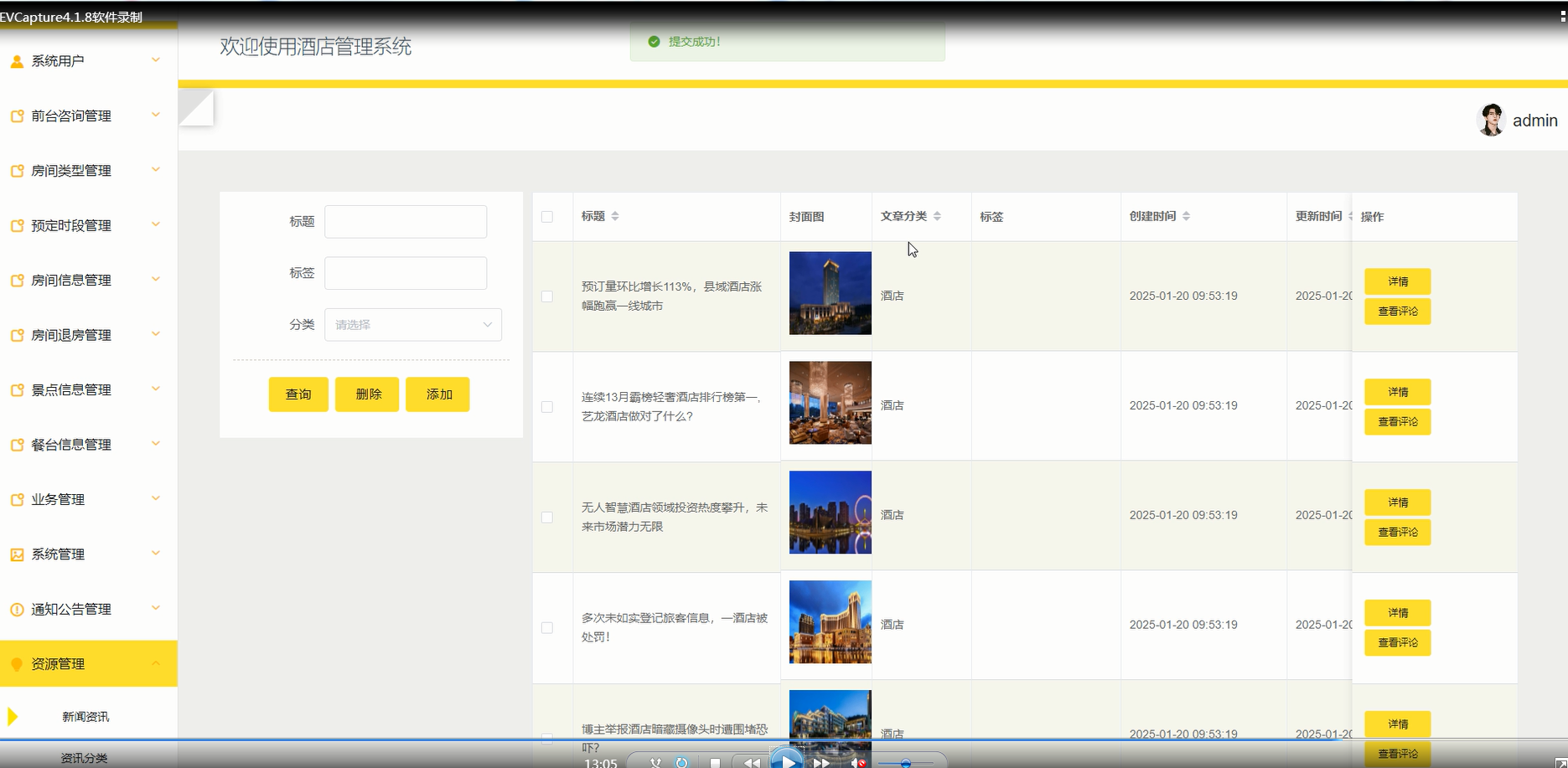新闻资讯:管理员可发布和维护酒店相关新闻(如行业动态、品牌宣传),丰富网站内容并增强客户粘性。
