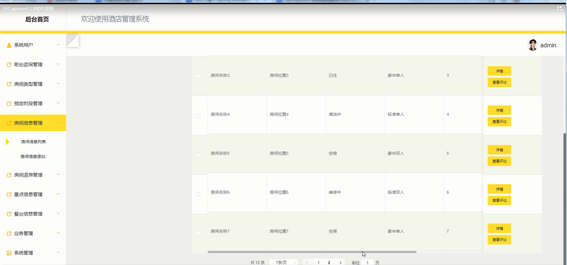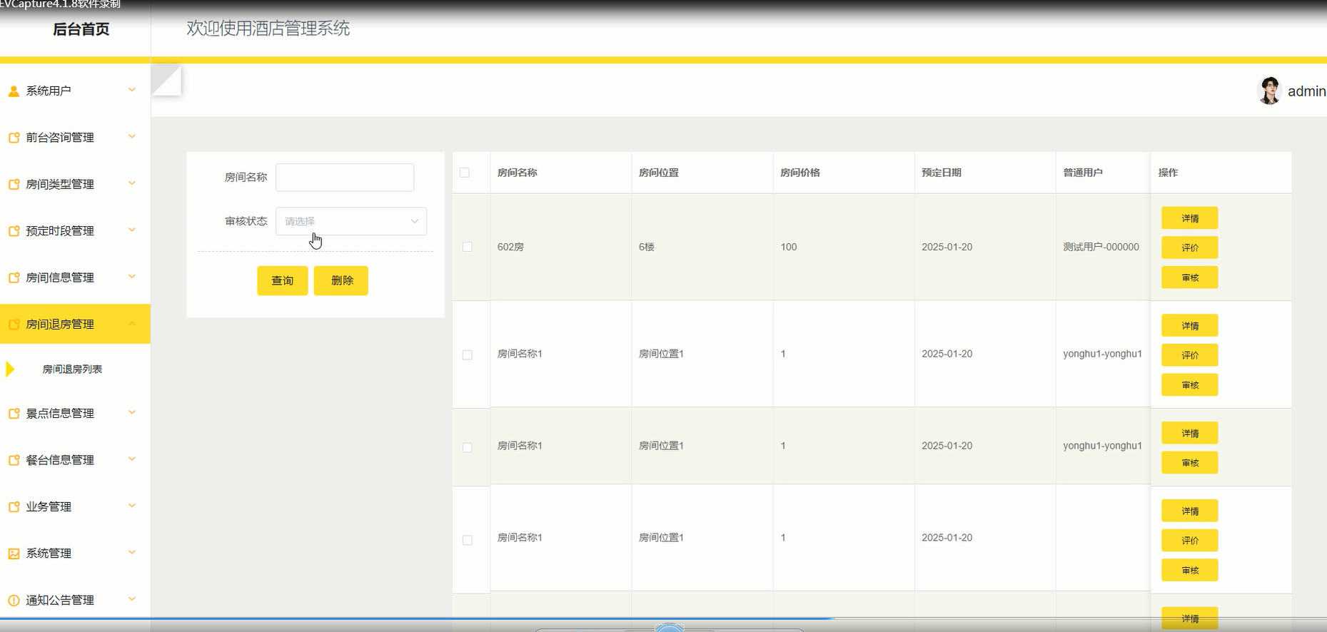 房间预定管理:管理员可审核、修改或取消客户房间预订订单,处理异常情况并生成预订报表。