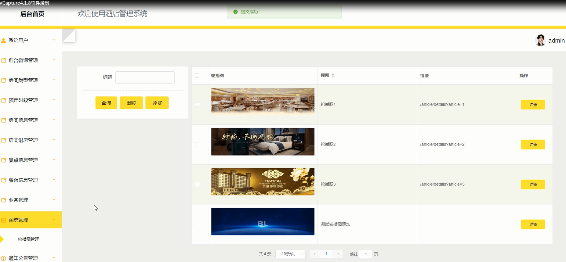 k) 系统管理(轮播图):管理员可配置首页轮播图内容(如促销活动、酒店特色展示),提升界面展示效果与信息传递效率。