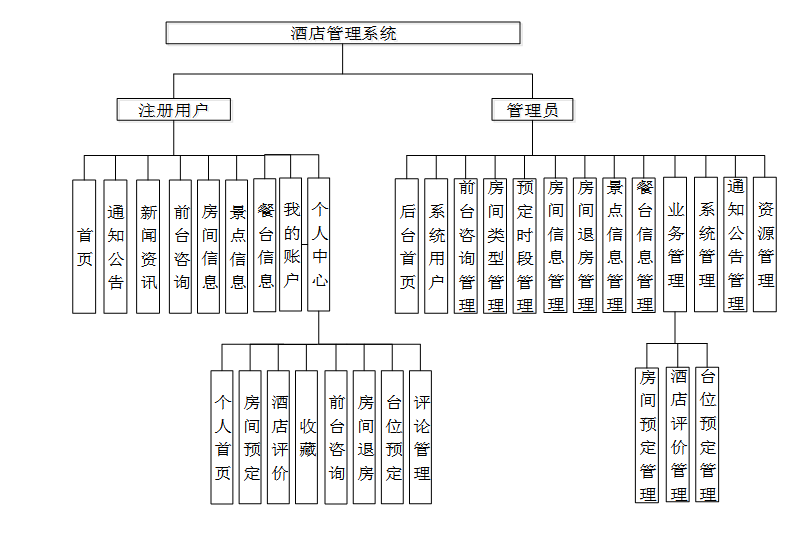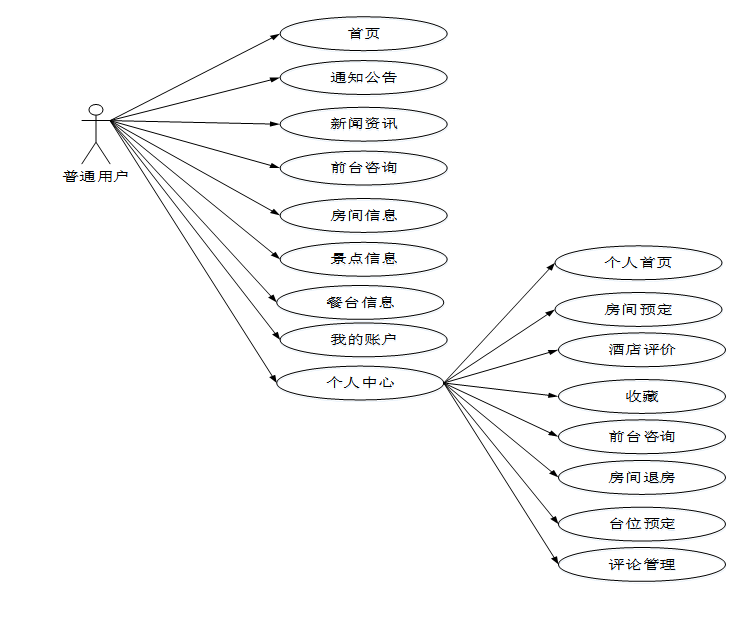 本酒店管理系统设计分为两个主要用户角色:普通用户和管理员。以下是对每个角色的功能需求的详细描述。