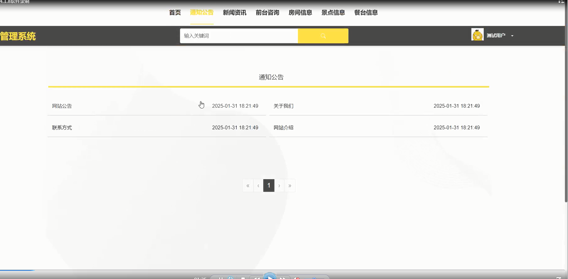 The system adopts a front-end and back-end separation architecture, with the back-end built on the Spring Boot framework and combined with MySQL database to achieve data storage and business logic processing; The front-end is developed using the Vue.js framework, providing an intuitive and user-friendly interface. The system functional modules cover the core business management of hotels, including room type and reservation time configuration, room information maintenance, check-out settlement, table and attraction information management, customer consultation and evaluation processing, etc. At the same time, the system supports carousel configuration, notification and announcement release, and news information management, enhancing the timeliness and diversity of information transmission.