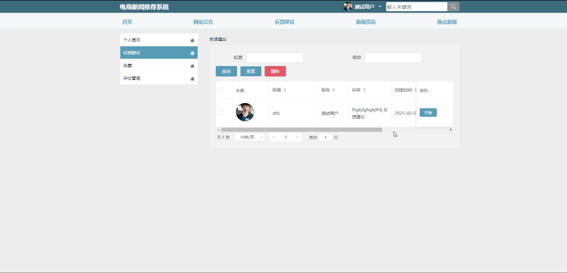 With the continuous development of the information age, the e-commerce news recommendation system based on hybrid recommendation algorithm plays a vital role in all walks of life. Based on Spring Boot, the e-commerce news recommendation system based on hybrid recommendation algorithm aims to provide users with an efficient and flexible information publishing and management platform. The main functions of the system include user management (administrator, ordinary user, VIP user), news information management, hot news management, news type management, etc., and support users of different roles to carry out news, editing, viewing and recommendation according to their permissions. At the same time, the functions of e-commerce news announcement management, carousel management and information classification can help administrators efficiently manage e-commerce news content and improve the content organization and display efficiency of the system. The resource management module is used to accurately classify and manage e-commerce news information to ensure that the data structure of the system is clear and the query is fast and efficient. The front-end of the system adopts HTML, CSS, JavaScript and other technologies, combined with the Bootstrap framework to achieve responsive design, to ensure a good user experience on various devices. The backend is developed using the Spring Boot framework, which enhances the scalability and maintainability of the system with its fast build and efficient RESTful API support. In addition, the system uses MySQL database for data storage to ensure data security and consistency. Through the combination of these technologies, the system can not only provide a smooth e-commerce news release and management experience, but also realize personalized e-commerce news recommendations, and improve user participation and satisfaction.