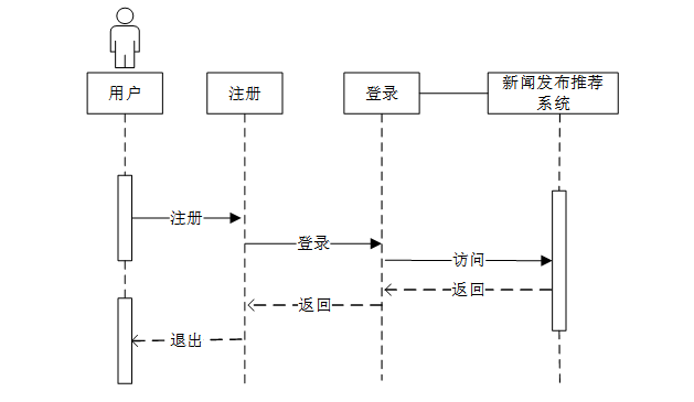 用户通过注册模块发送注册请求,系统完成注册后返回确认信息。随后,用户通过登录模块发送登录请求,系统验证用户信息后允许访问目标系统。用户完成操作后可选择退出,系统终止会话。注册时序图,如图4-3所示。