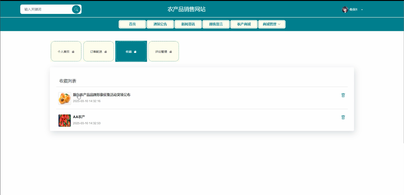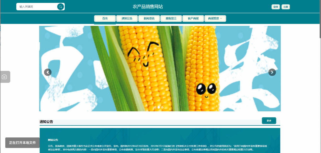 通知公告:会员用户可以查看农产品销售网站发布的重要公告信息,供会员用户浏览和熟悉网站相关事项。