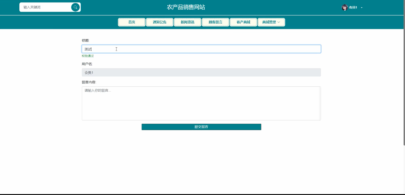 顾客留言:会员用户可以通过填写留言标题、内容等信息提交留言,反馈自己的购物体验与心得。