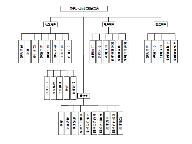 本论文设计与实现的基于Spring Boot的社区配送系统,涵盖了多个用户角色和功能模块,旨在为不同用户群体提供高效、便捷的配送信息服务。系统通过对社区用户、商家用户、配送用户和管理员四类用户的需求分析,提出了具体的功能设计和实现方案。以下是各角色用户功能的详细分析。