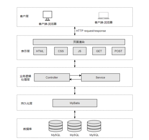 B/S架构通常采用Web技术进行实现,包括HTML、CSS和JavaScript等。用户在浏览器中发起请求,服务器响应并返回数据。数据传输通常通过HTTP或HTTPS协议进行,B/S架构的灵活性使其适用于在线购物、信息管理系统和社交网络等各类应用场景[4]。由于其易于扩展性,B/S架构可以方便地支持大规模用户访问,适应不断变化的业务需求。