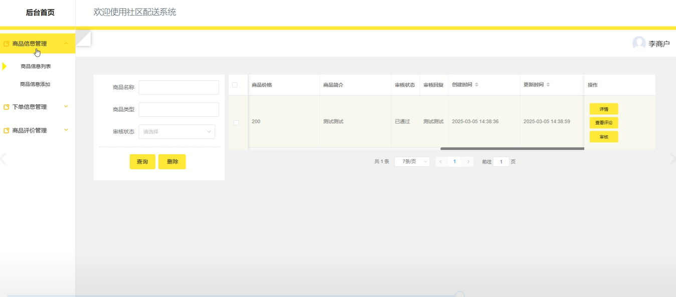 6.商品评价管理:商户可以管理商品的用户评价,回应客户意见并优化商品服务。
