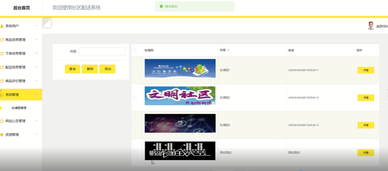8.系统管理:轮播图管理:管理员可以添加、修改和删除平台首页的轮播图,调整首页展示内容。