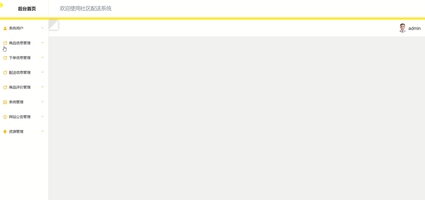 关键词:社区配送系统;SpringBoot;Java;MySQL