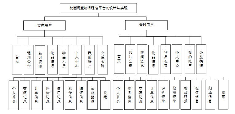 通过对应的功能做了需求分析以后该校园闲置物品租售平台各角色主要包括的功能说明如下: