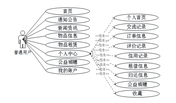校园闲置物品租售平台普通用户角色用例图如下所示。