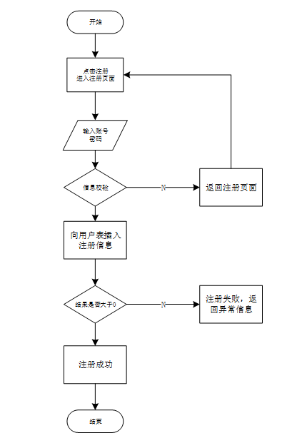 注册的过程,第一部分是账号的注册,第二部分是信息完善。在业务开展过程中,管理员可对用户信息进行修改等管理操作,注册流程如图3-4用户注册流程图所示。
