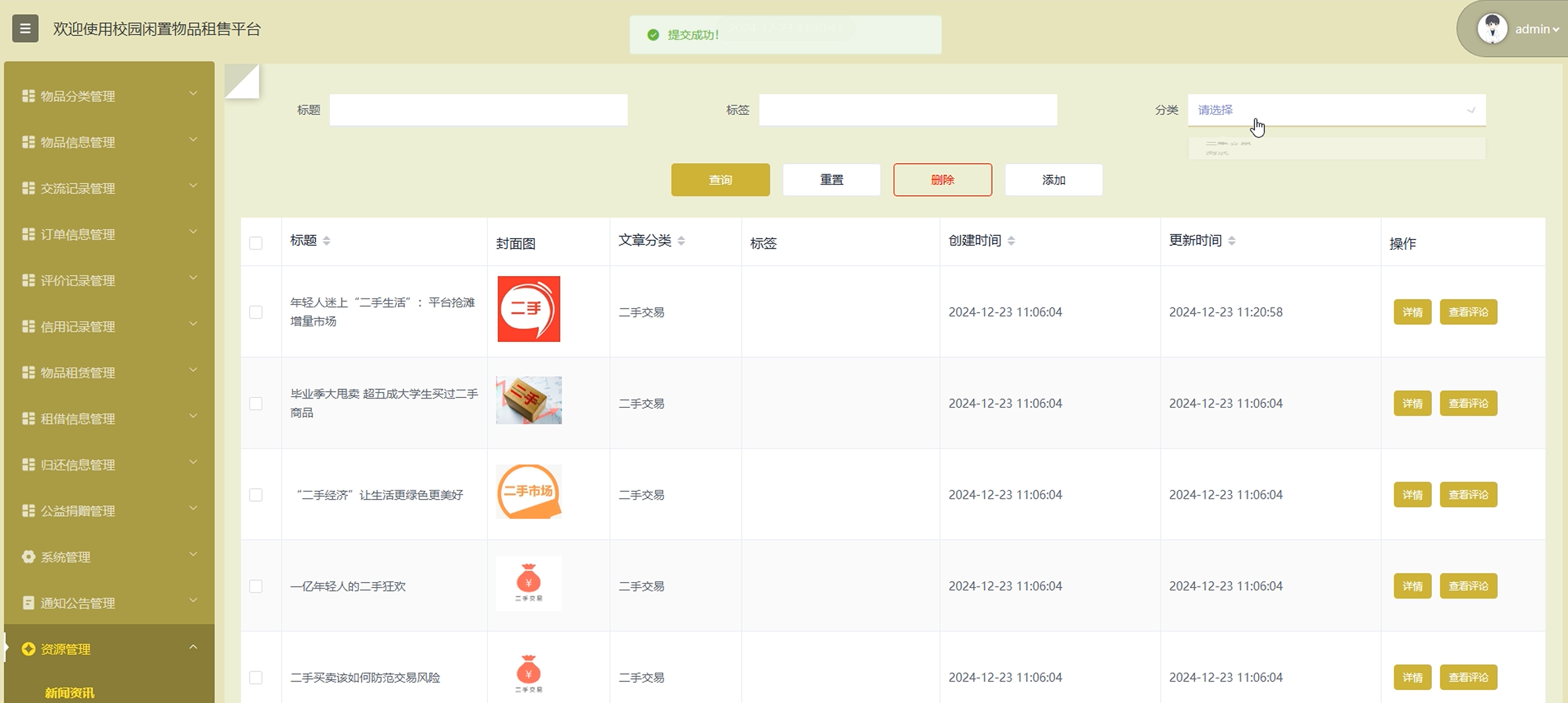 - 物品信息管理:卖家对物品信息的发布、编辑、下架等操作,支持多种物品信息分类和标签。