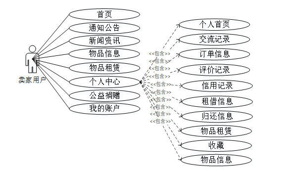校园闲置物品租售平台卖家用户角色用例图如下所示。