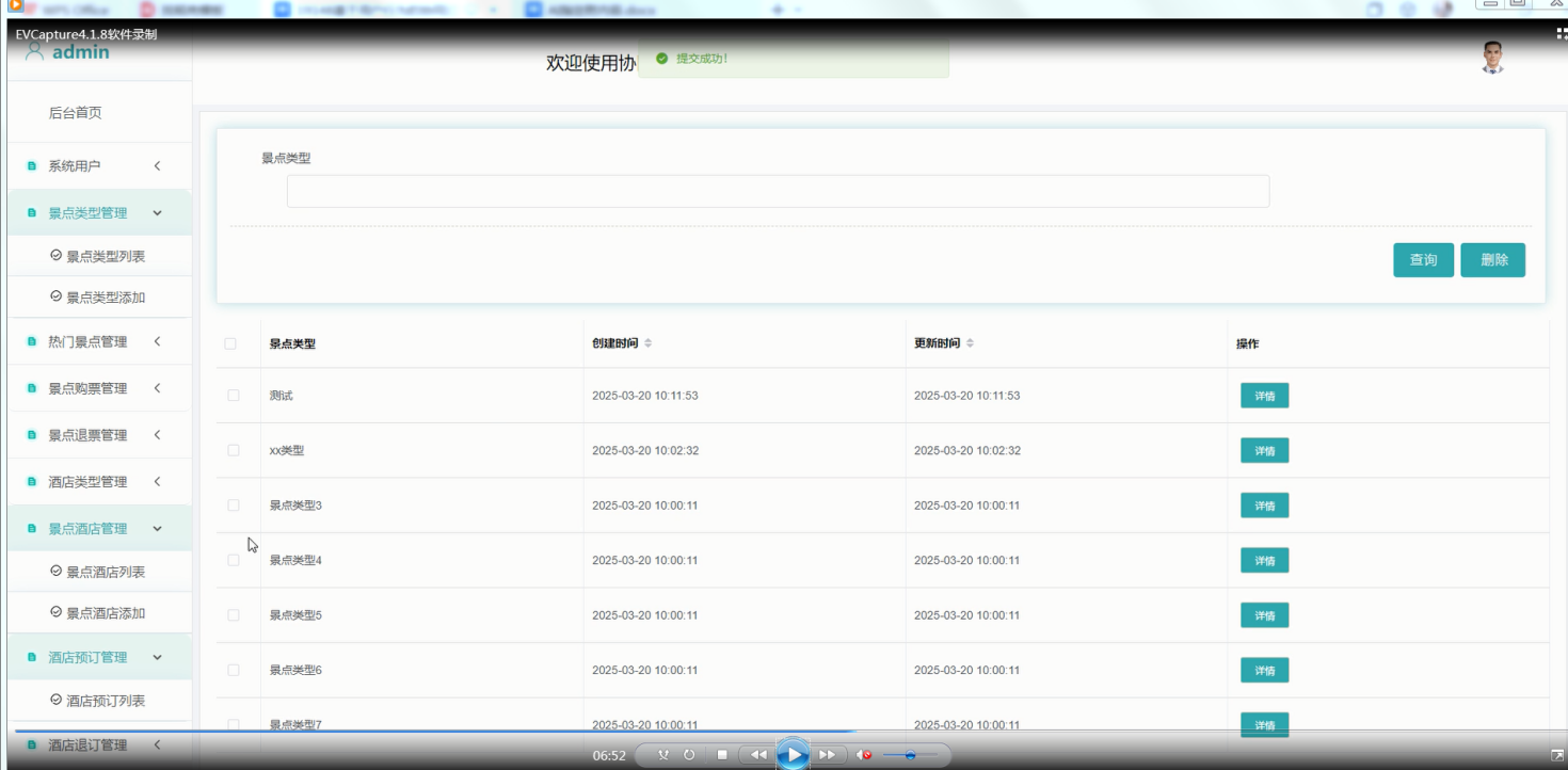 景点类型管理:管理景点的分类信息,可以新增、删除、修改景点类型。