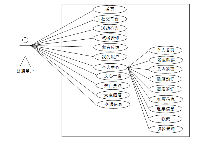 根据以上功能需求,得出以下用例图,普通用户用例图如下所示。