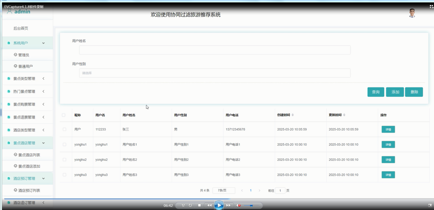 功能需求分析是协同过滤旅游推荐系统设计和开发的关键步骤,它旨在明确系统的功能和性能要求。以下是对协同过滤旅游推荐系统的功能需求分析: