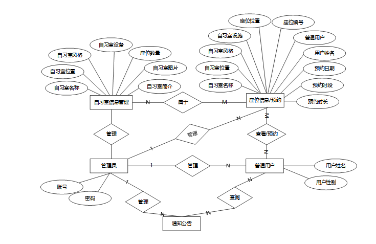 (1) 自习室预约管理系统整体E-R图,如图4-4所示: