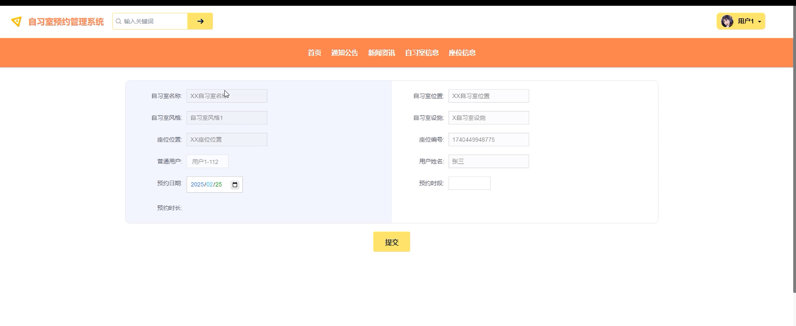 图5-4 自习室信息界面图
